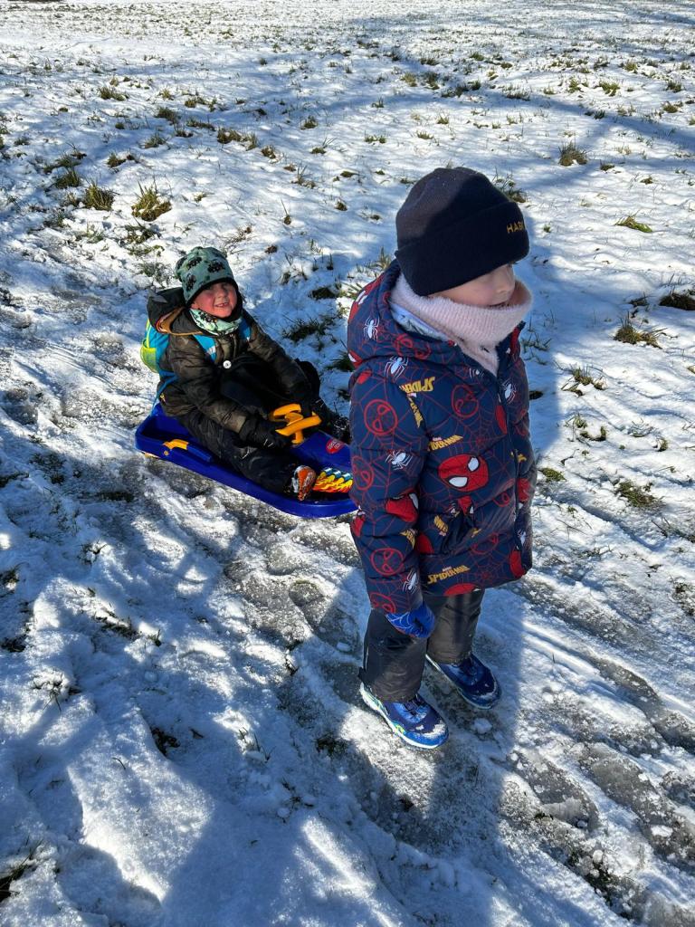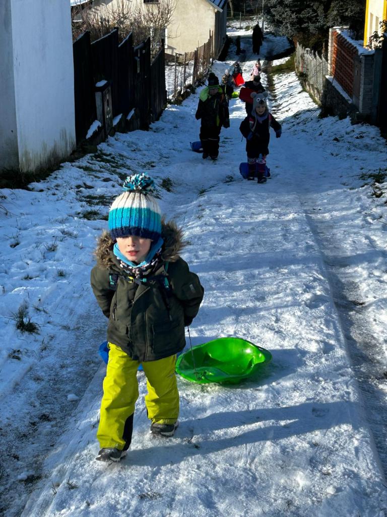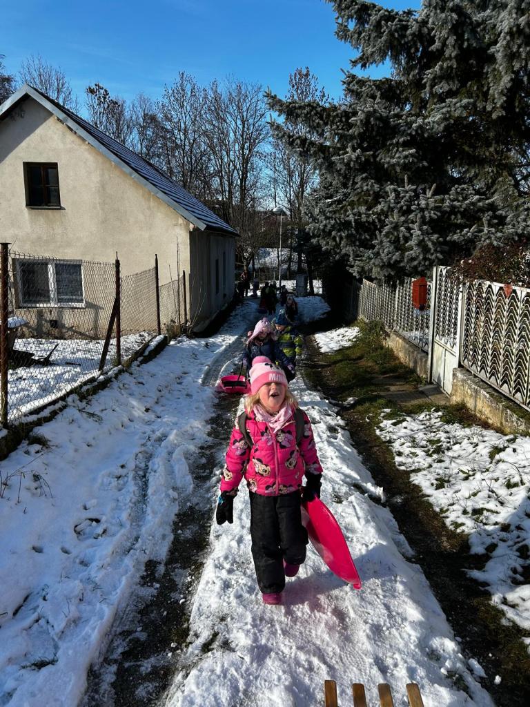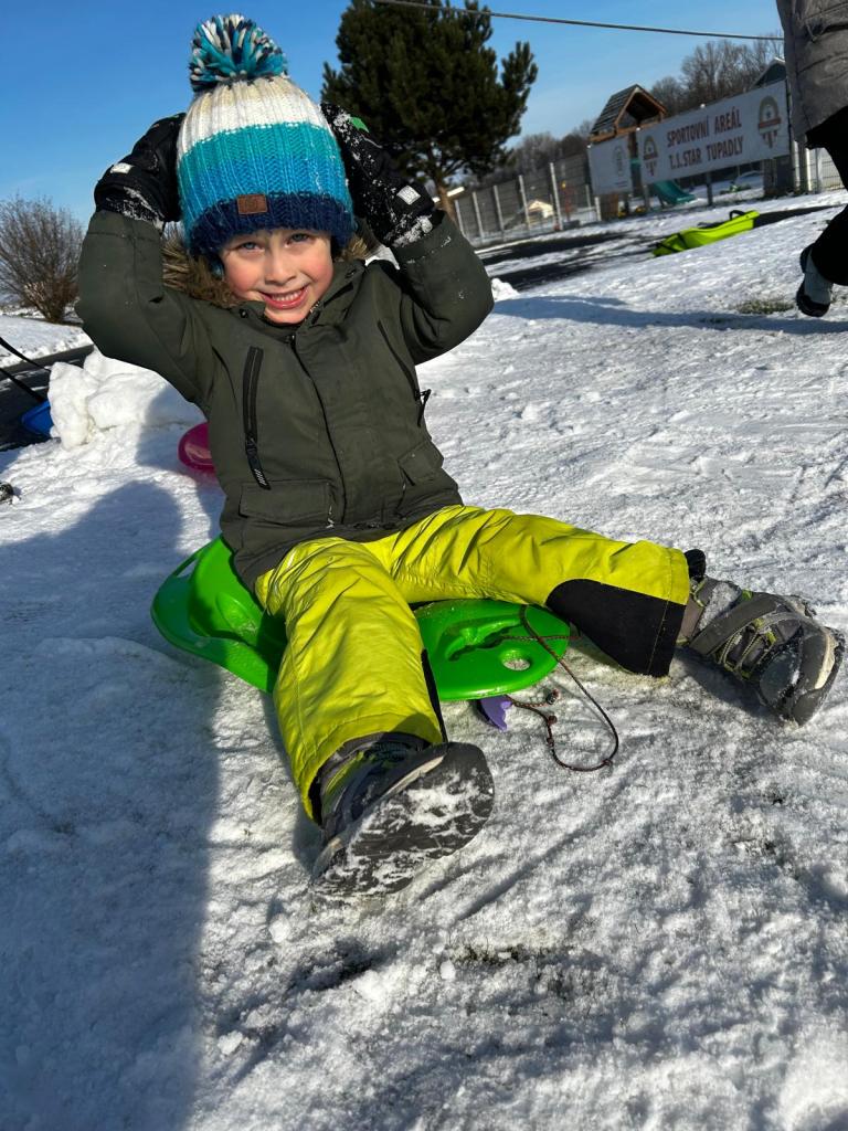 Tentokrát jsme nešli daleko, naším cílem byl nejbližší kopec do Tupadel a bobovačka na prvním sněhu. Děti byly nadšené :-)