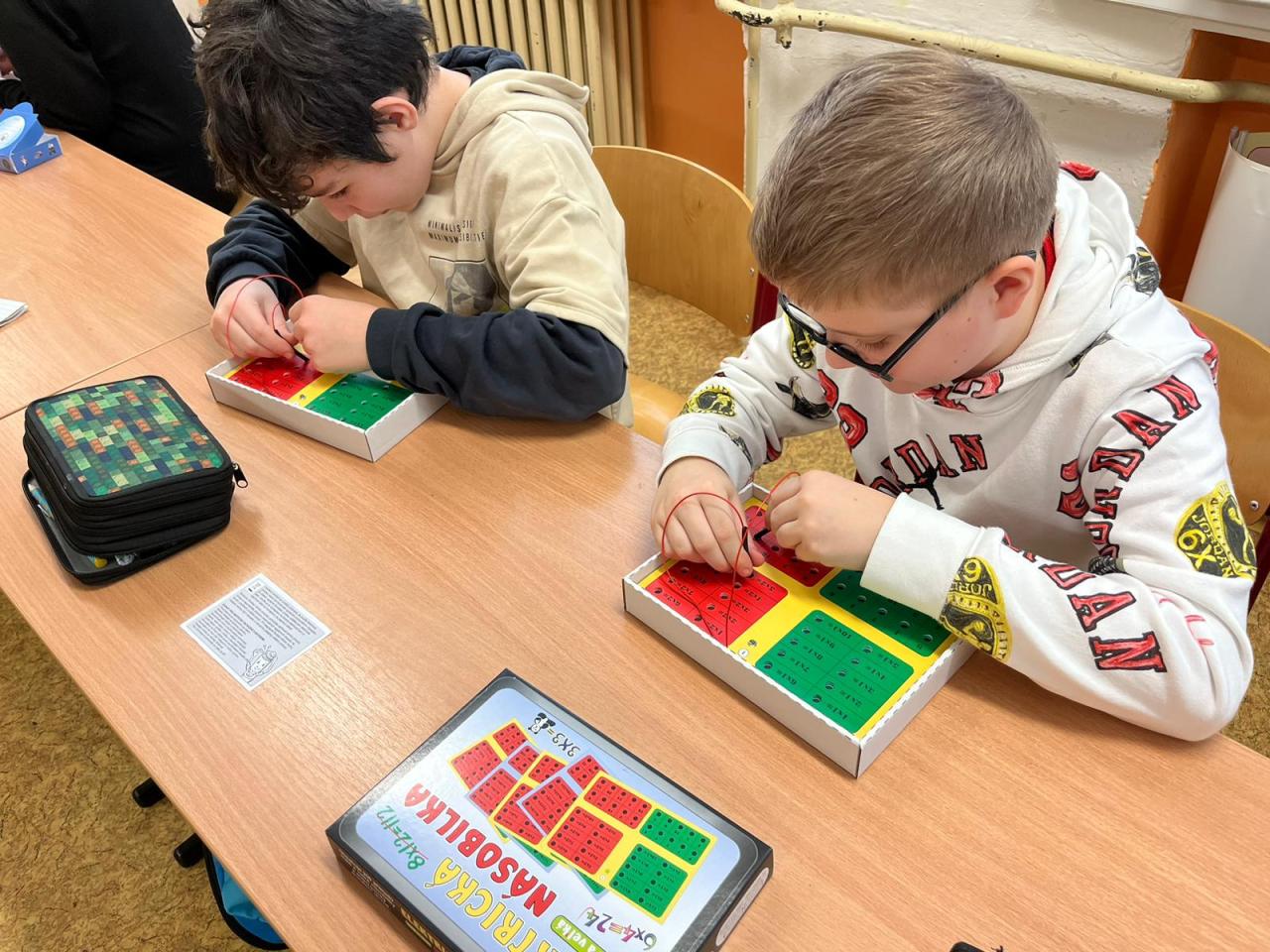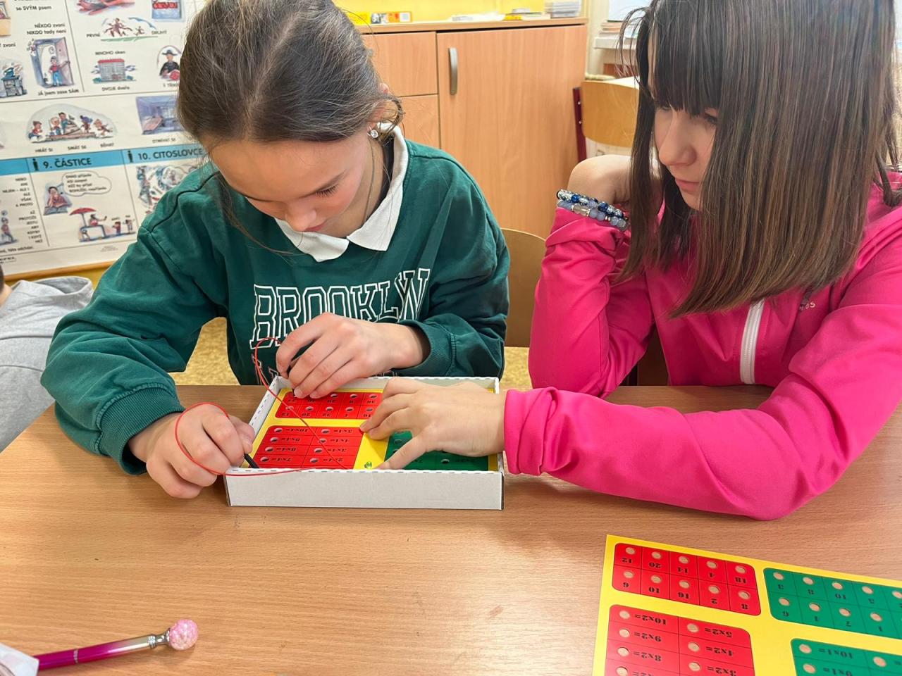 Než děti ze 4. ročníku dostaly vysvědčení, mohly si vyzkoušet hry, které rozvíjí jejich smysly, pozornost a paměť. Prostřídaly si mezi sebou Pexeso pro uši, brain box Harry Potter, elektrickou násobilku...