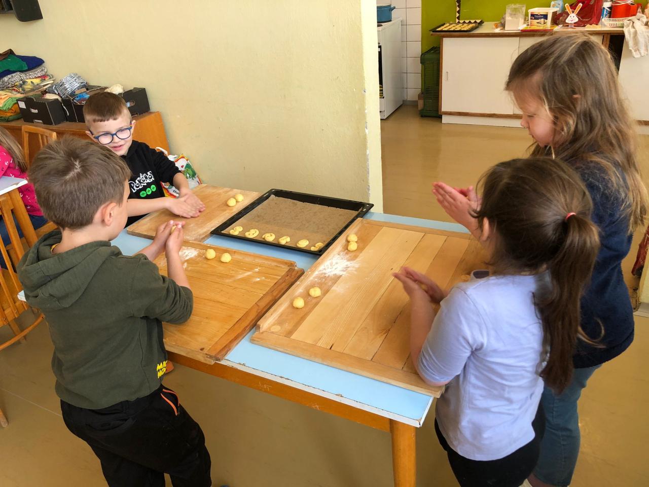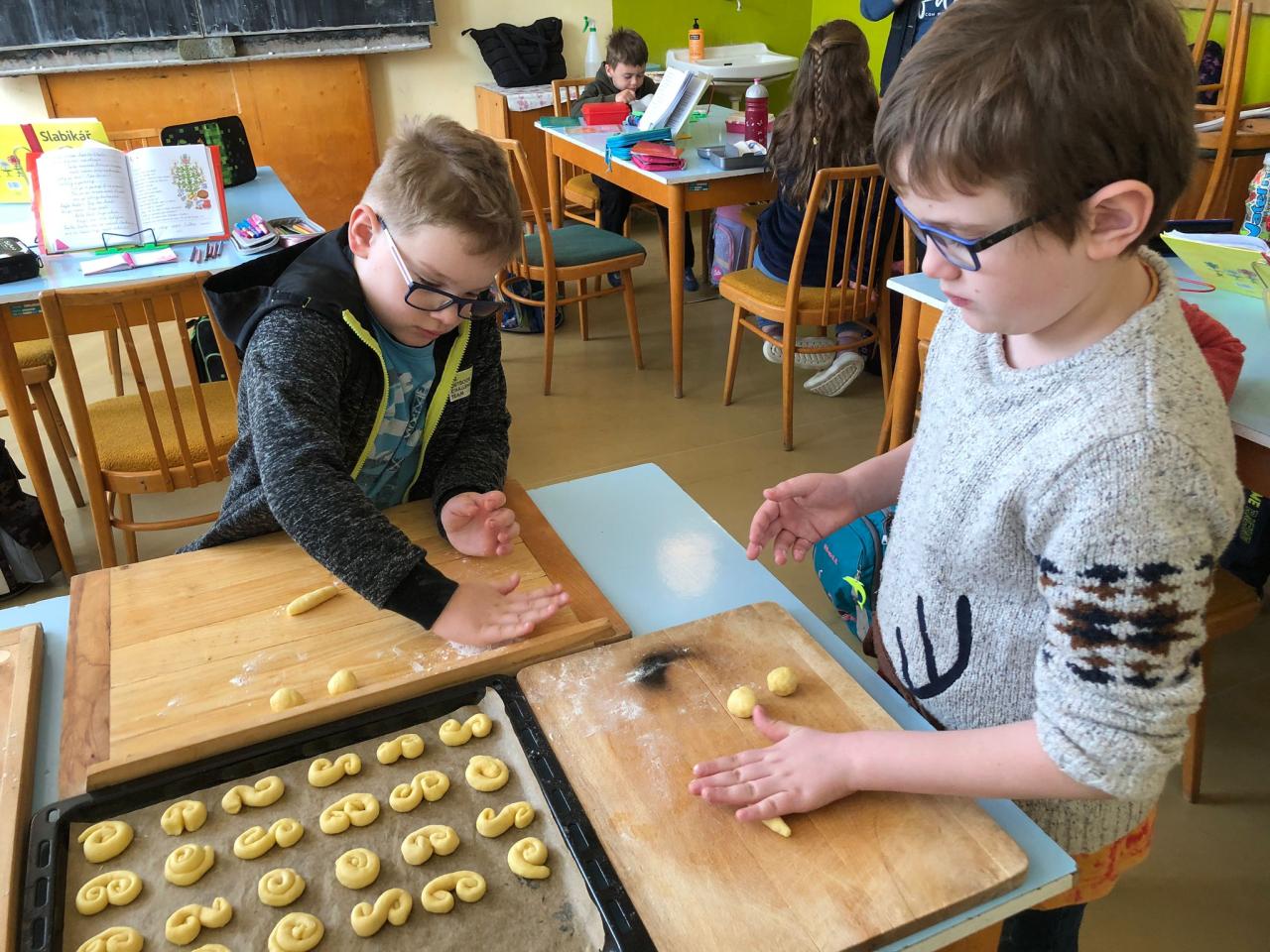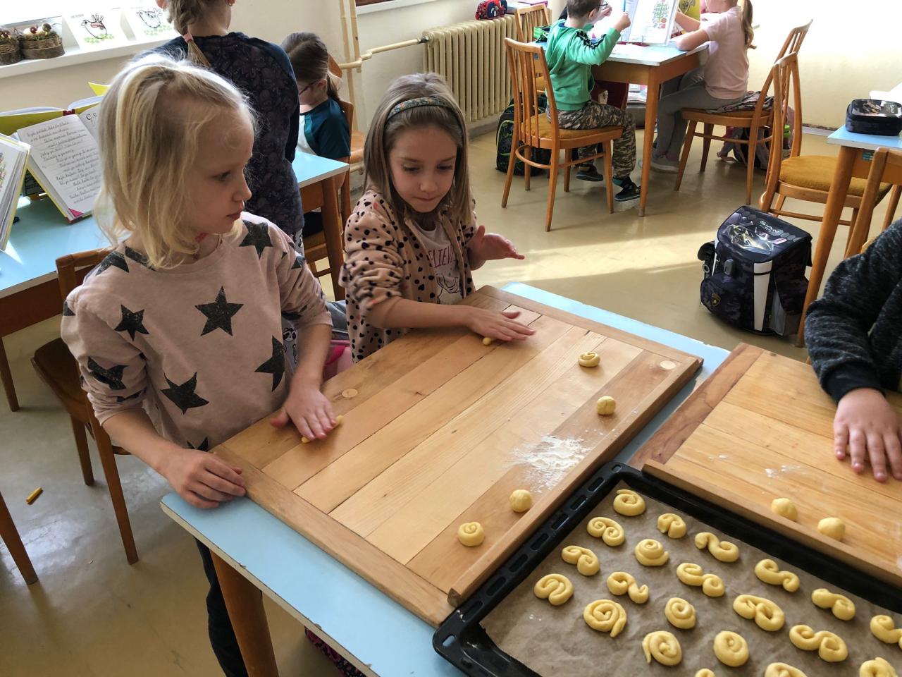 Naši prvňáčci se před Velikonocemi dali, pod vedením svojí paní učitelky, do pečení velikonočních jidášů :-).