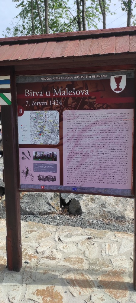 Odtud již začala pěší túra k památníku bitvy u Malešova a dál až na hrad Sion. Po odpočinku a nalezení reliéfu Jana Roháče z Dubé pokračovala cesta lesem a po silnici zpět do Malešova. Po krátkém občerstvení se vydala skupina dále k Velkému rybníku. Zde se deset odvážlivců vrhlo do vody a užilo si příjemné ochlazení v horkém dni. Pak již všichni pokračovali po naučné stezce po mlýnech až do Kutné Hory. Na náměstí si chvíli odpočinuli, nasytili a z autobusového nádraží vyrazili do Čáslavi a domů.