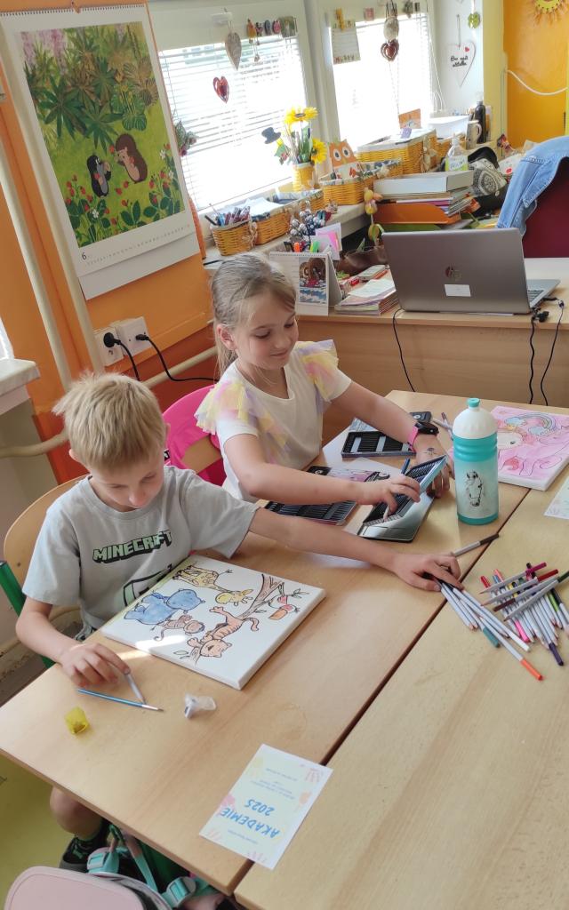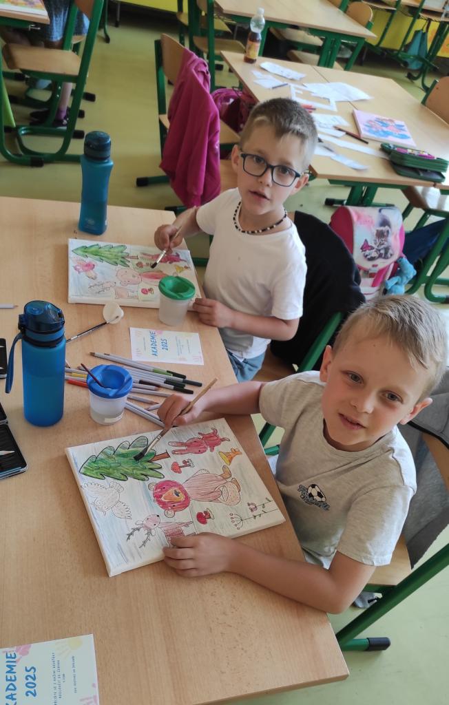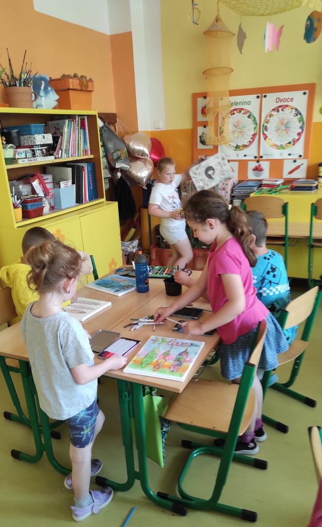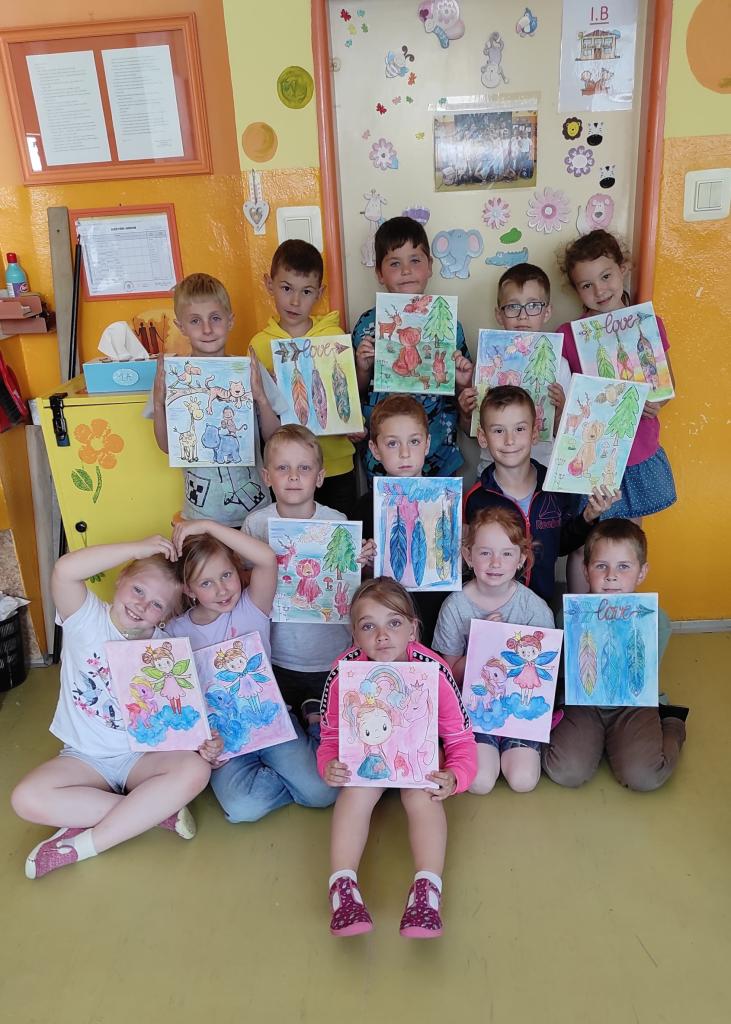 U prvňáčků probíhal v pátek 13.6. projektový den s akvarelovými pastelkami. Děti si tak zkusily novou techniku vybarvování. Akvarelové pastelky se dají totiž rozmývat vodou, tahy tužkou pak nejsou tolik vidět a výsledný efekt je famózní :-). Prvňáčkům se obrázky moc povedly!