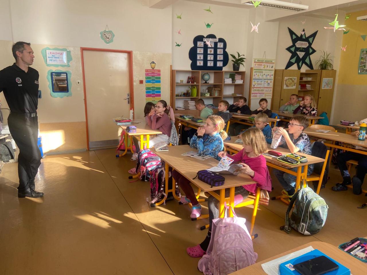 V pondělí 20. 10. probírali naši čtvrťáci otázky bezpečnosti se zástupcem Policie ČR. Čas od času je potřeba, aby si děti zopakovaly, jak se bezpečně chovat v běžném silničním provozu, ve společnosti ale i na internetu...