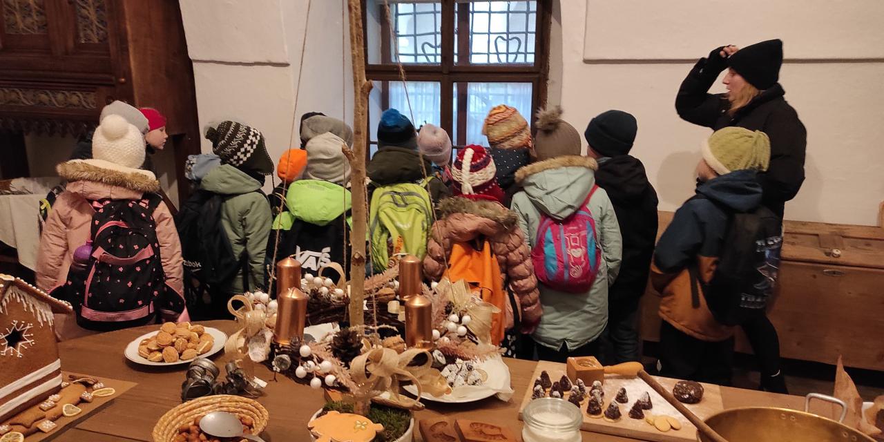 Děti z 1., 2. a 3. ročníku vyrazily ve čtvrtek 4. 12. do Žlebů na zámek. Čekalo je zde kouzlo Vánoc v zámeckém kabátě. Užívaly si nádherně vyzdobené komnaty a poslechly si příběhy o tom, jak slavili Vánoce naši předci. Dokonce ochutnaly i cukroví...