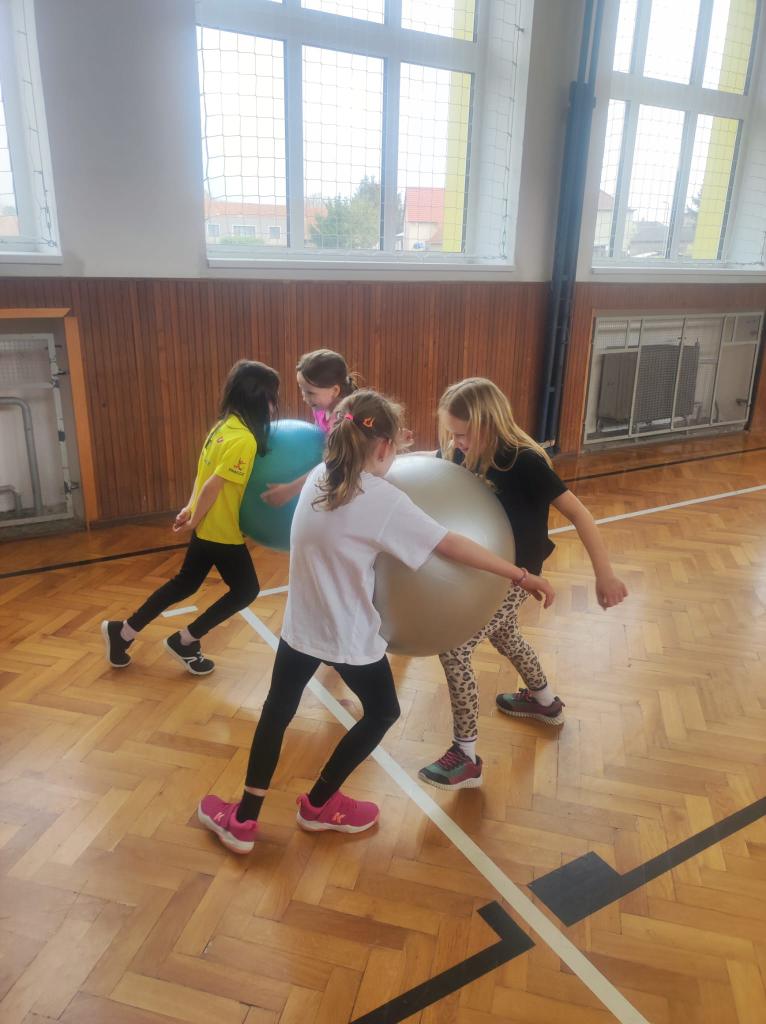 Nejdříve děti ukázaly sílu na žebřinách a pak se statečně popraly s velkými gymnastickými míči. Největší zábavu ale vzbudila obíhačka - ta měla u dětí obrovský úspěch :-). Na závěr jsme se zhoupli na kruzích a spokojeně tak zakončili hodinu.