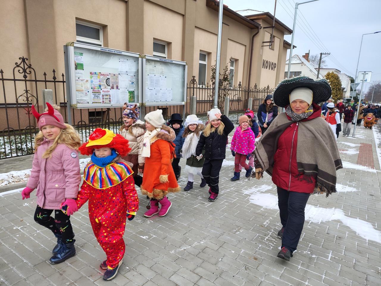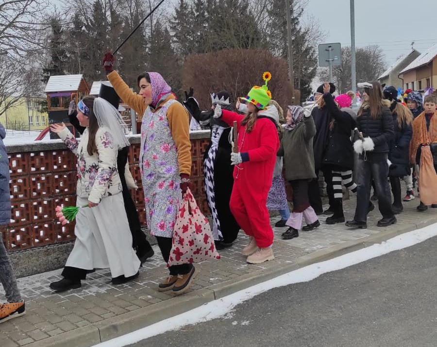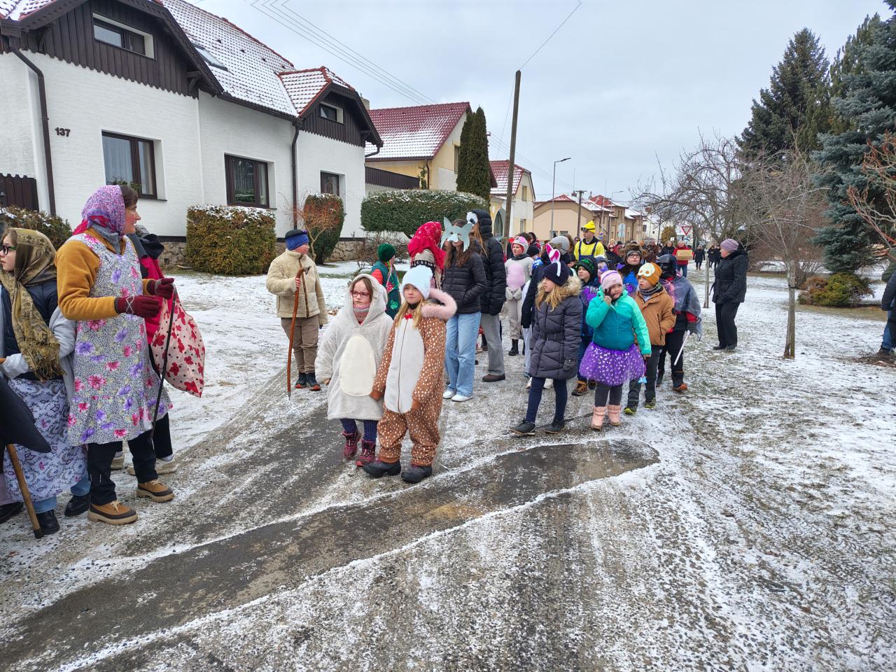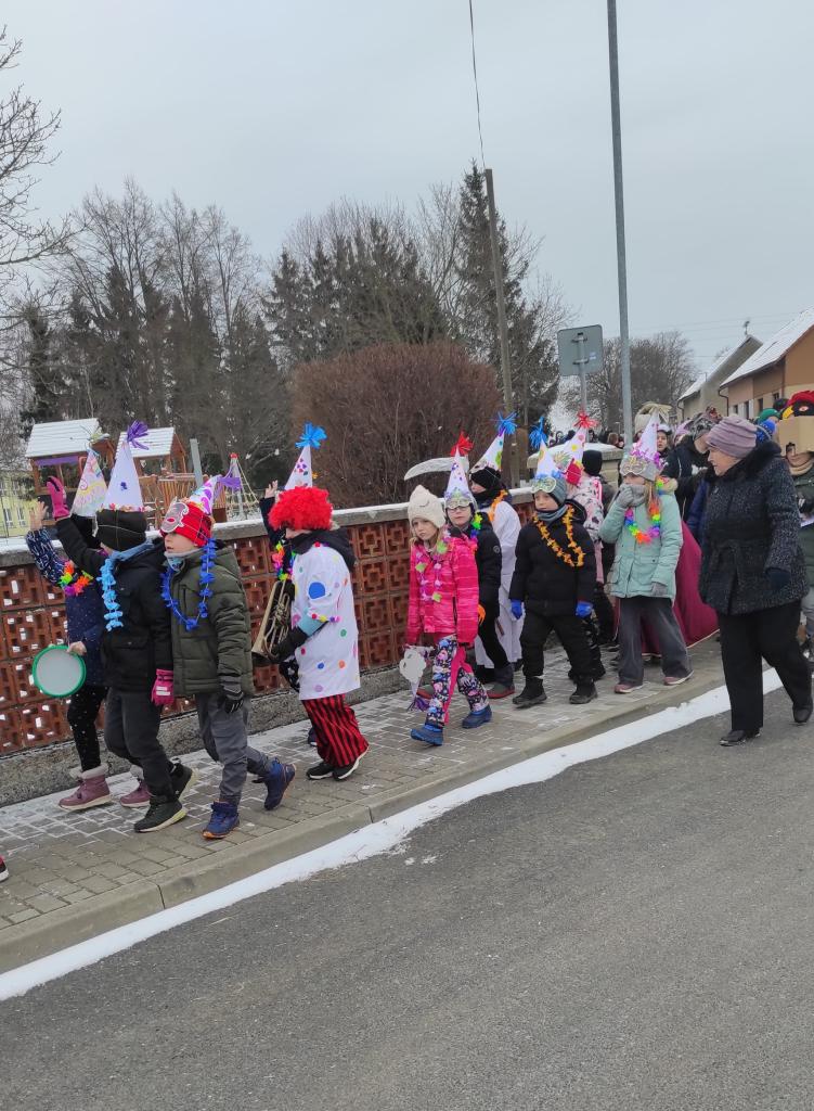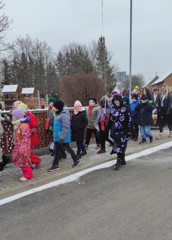 V pondělí 16. 2. se konal již popáté masopustní průvod pořádaný naší školou. Ani mráz nás neodradil od obchůzky vesnice v maskách. Průvod byl opět ukončen na návsi vystoupením žáků, kteří si pro pana starostu a obecenstvo připravili masopustní písničky, tanečky a scénky.
