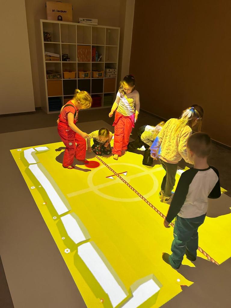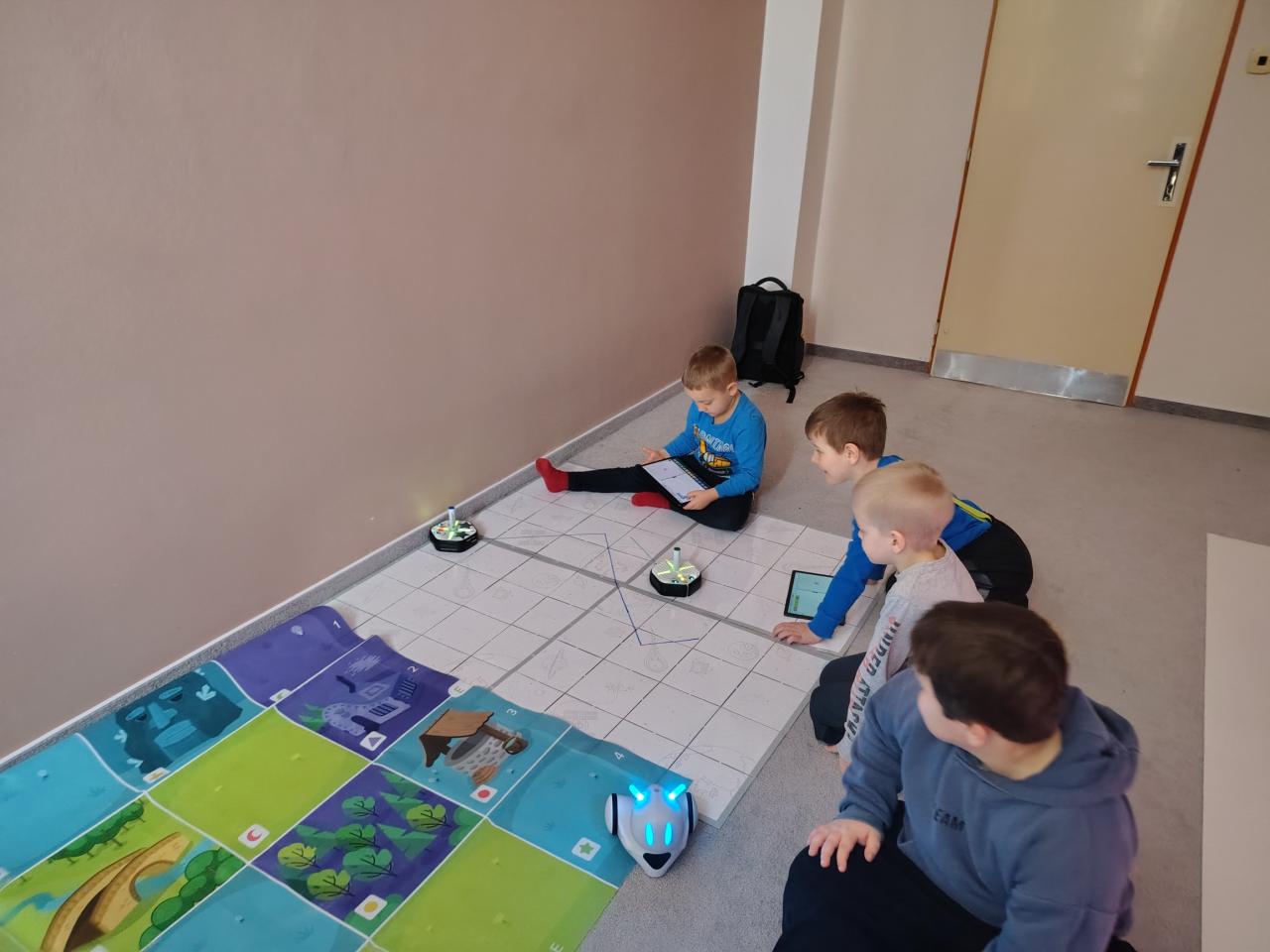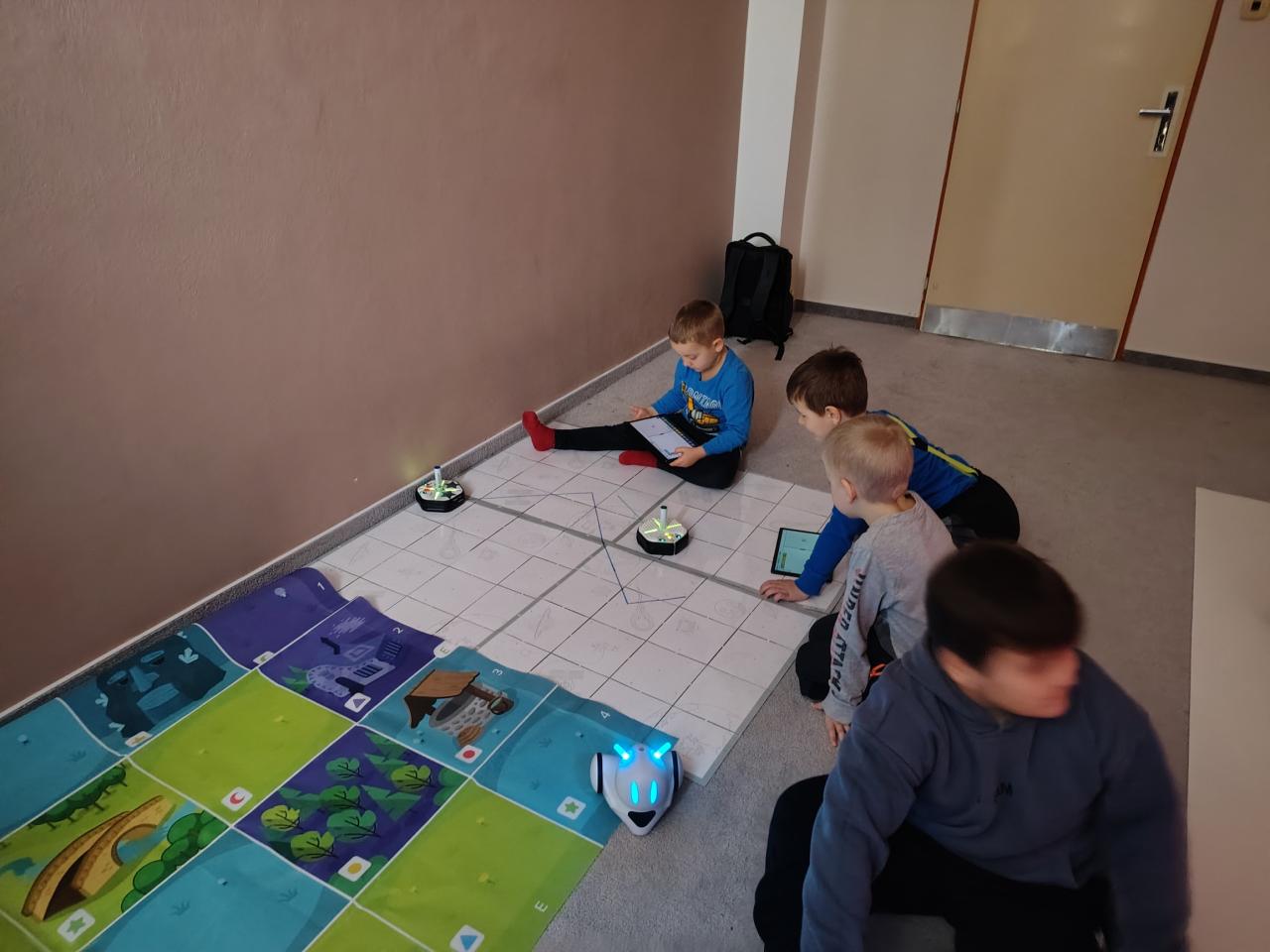 Našim předškolákům jsme také ukázali naši speciální třídu s interaktivní podlahou, kde se vyřádili a také si zkusili programovat roboty. Pak už následovalo loučení...
