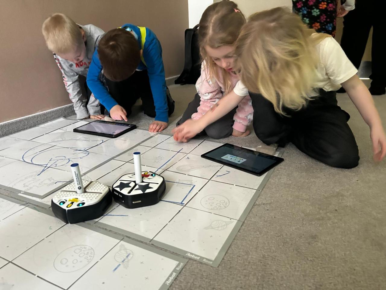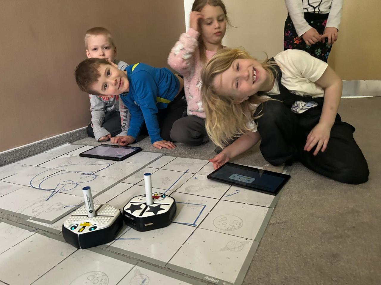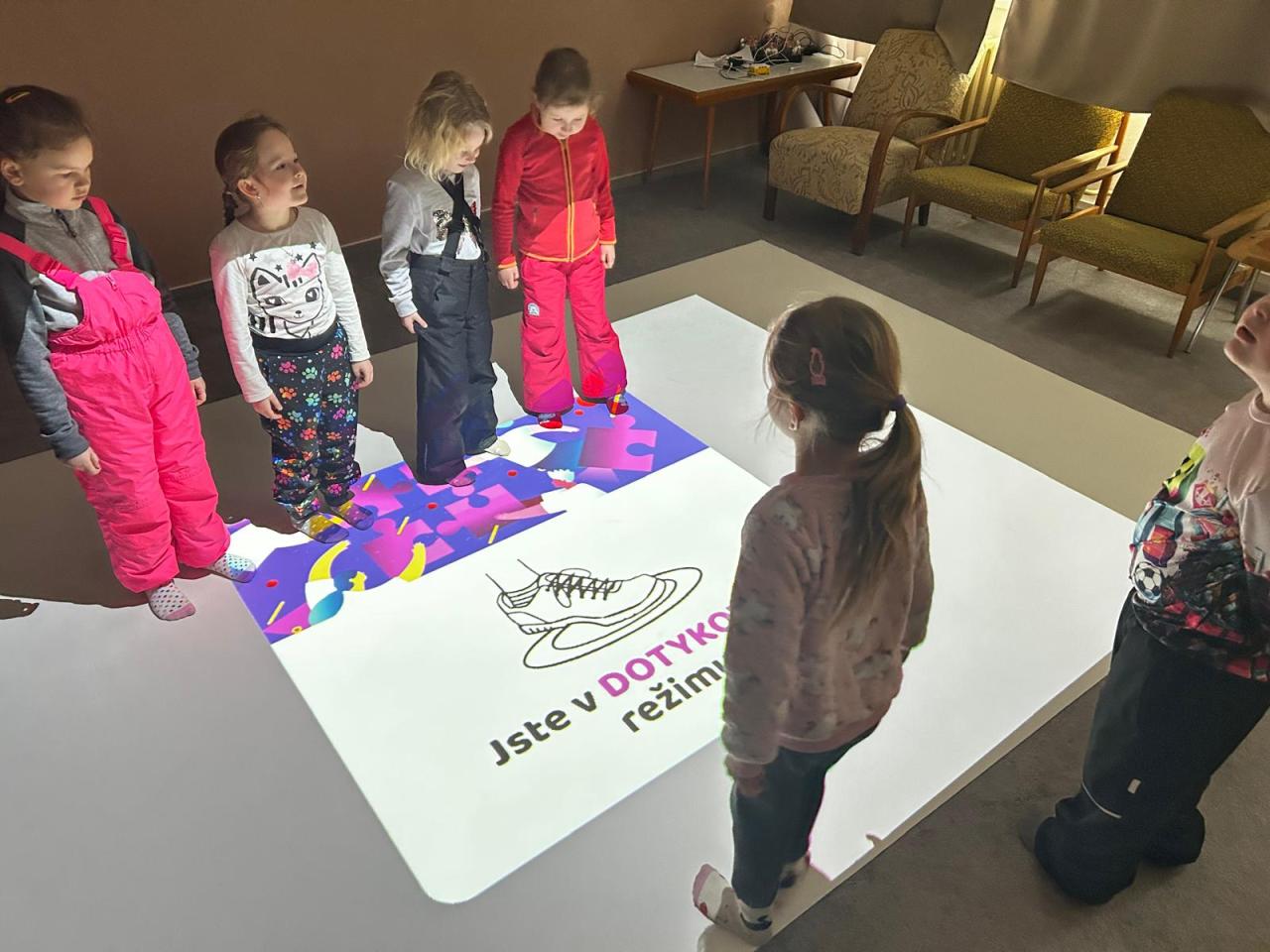 Našim předškolákům jsme také ukázali naši speciální třídu s interaktivní podlahou, kde se vyřádili a také si zkusili programovat roboty. Pak už následovalo loučení...