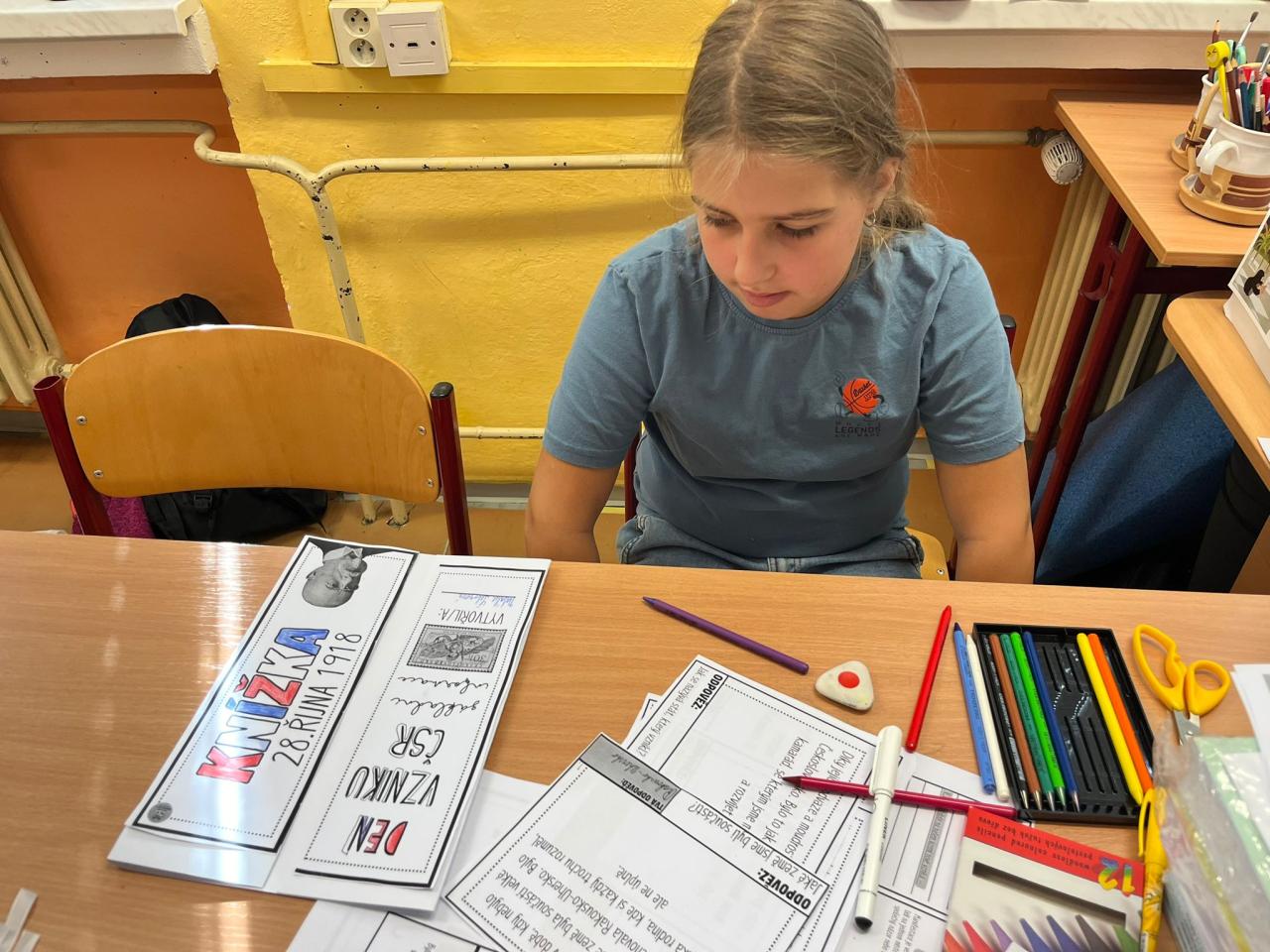 V pátek 24. 10. si naši žáci připomněli vznik Československé republiky. Obzvlášť se vydařila "živá trikolora" vytvořená žáky, kteří byli oblečeni v barvách naší vlajky.