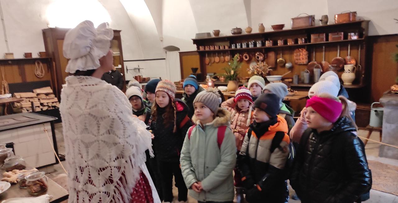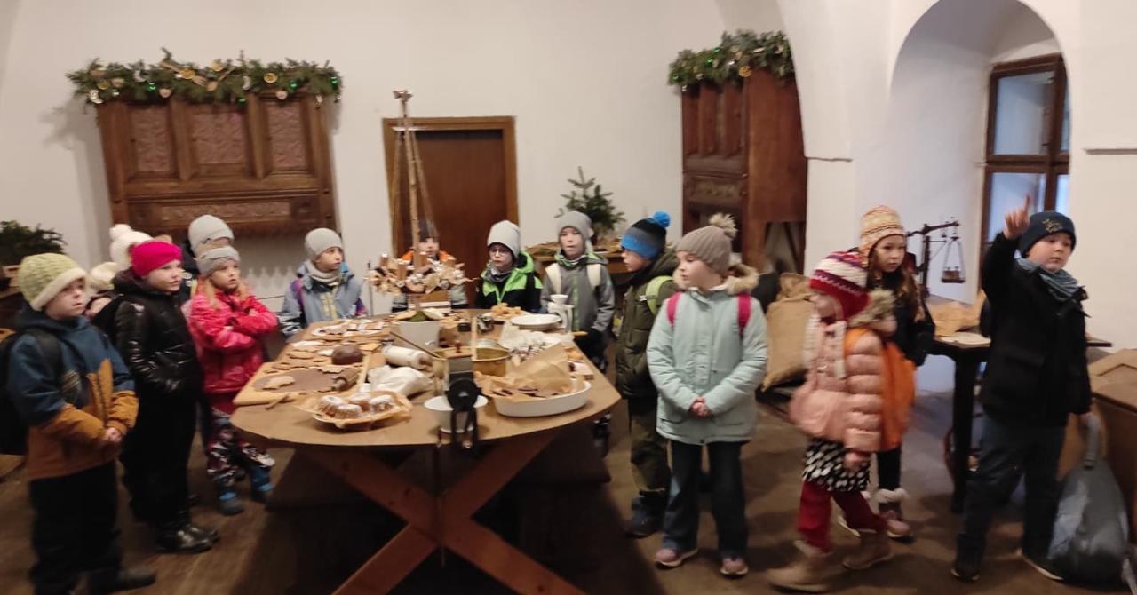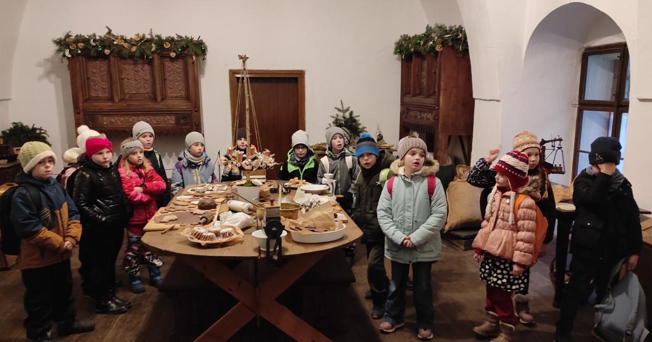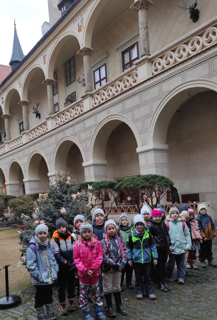 Děti z 1., 2. a 3. ročníku vyrazily ve čtvrtek 4. 12. do Žlebů na zámek. Čekalo je zde kouzlo Vánoc v zámeckém kabátě. Užívaly si nádherně vyzdobené komnaty a poslechly si příběhy o tom, jak slavili Vánoce naši předci. Dokonce ochutnaly i cukroví...